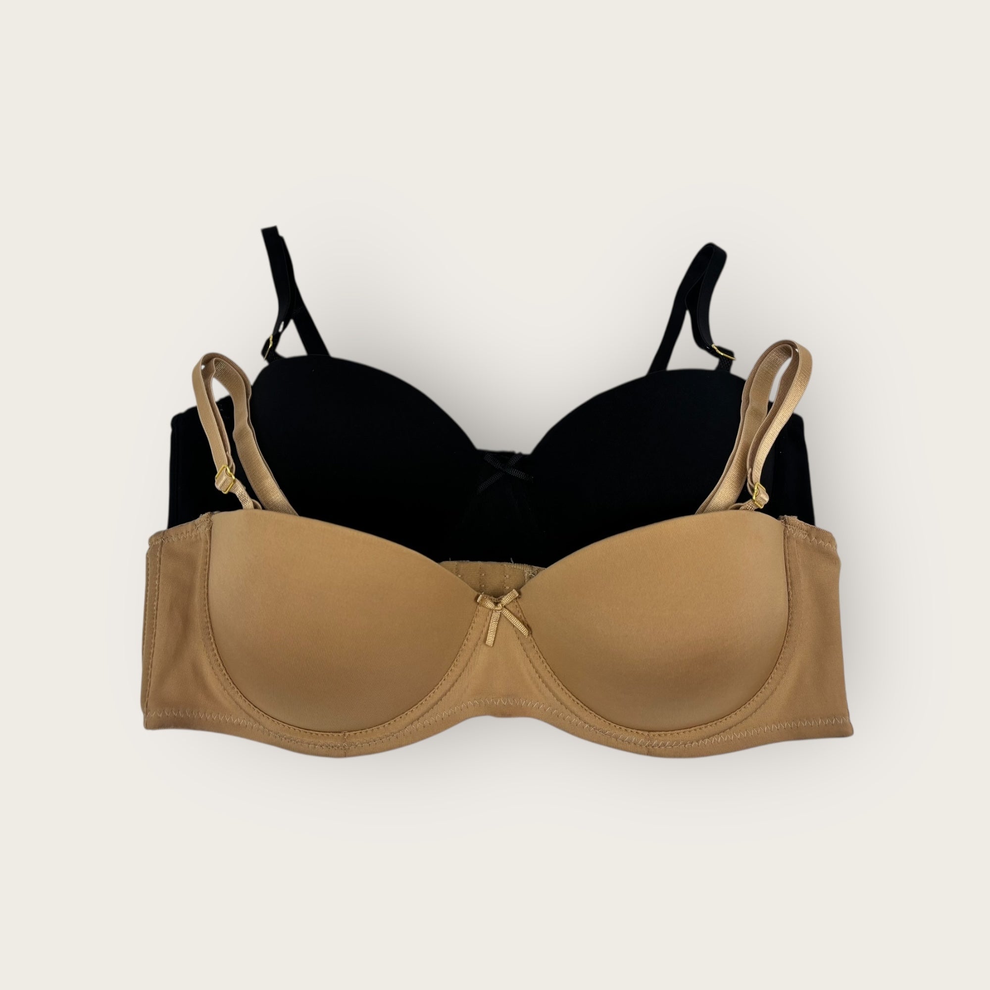 A classic and versatile 2-pack of balconette bras designed for smooth shaping and elegant detail. Featuring level 1 molded cups, clean finish wings and cradle, and removable multiway adjustable straps with gold hardware for a polished look.